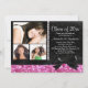 Pink/Black Sparkle Bow 3 Photo Graduation Party Invitation