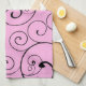 Stylish and bold pink and black swirly kitchen towel, customizable with your own text or photo, a unique and elegant addition to your kitchen decor.