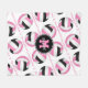 This cute volleyball themed fleece blanket features a mirrored pattern of pink, black and white volleyballs with the phrase "The volleyball court is my happy place" in a casual handwritten-style font along with heart shapes in pink stretching between the angled rows of volleyballs - athlete name and monogram can be personalized on the large overlying circle pendant - background is customizable white - easily replace the monogram with the player's varsity letter or jersey number - by katz_d_zynes