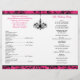This modern and trendy hot fuchsia pink, black and white chandelier wedding program or Order of Service has an ornate pink and black scroll and swirl pattern background that matches the chic wedding invitation shown below. ****PLEASE NOTE that the higher grade paper is a card stock and does not fold well. All text is customizable. If you require any matching items, or if you want another color combination or if you need help getting your information to fit, please email your request to niteowlstudio@gmail.com. If you would like to have more elegant fonts with pink headings for the wedding party, I'd be happy to do that for you, but there would be a $25 design fee, payable through Paypal first.