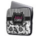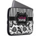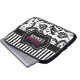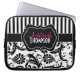 This personalized black and white floral damask laptop sleeve has text boxes for you to customize with your own name, initials, business name, or other text. If you need any help customizing, please email niteowlstudio@gmail.com.