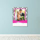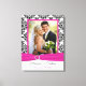 This black and white damask wedding photo canvas has a pink FAUX ribbon and jewelled brooch that matches the wedding invitation shown below. Upload your own digital wedding photo to have a beautiful keepsake of you wedding day or anniversary. It would also make a lovely gift for the newlyweds, parents of the bride and groom, or grand parents.