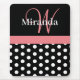 Pink Black White Polka Dot Monogram Mouse Pad