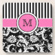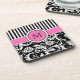 This modern and trendy monogrammed hot pink, black, and white stripes with floral damask coaster set would make an ideal house-warming gift for the hip, young couple. Customize it however you want!