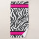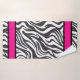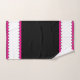 This beautiful and stylish towel set with bright pink, black and zebra print will brighten up any bathroom. The bath towel features black and white zebra animal print with hot pink and black borders. The hand towel is black with borders of white and hot pink. The washcloth is hot pink with borders of black and white. The bright and classic colors add pizzazz to any decor.