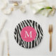 Pink & Black Zebra Stripe Monogram Birthday Party Paper Plates