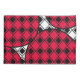 This pillowcase has a mid-century modern design of solid black diamonds inside black diamond outlines with pink blobs under them, all on a field of white.