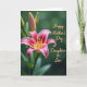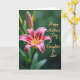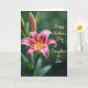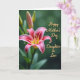 This card features a large flower on the left, with layered petals in bright pink and soft white that fade into a glowing golden center. Just above it, a small cluster of slim green buds leans inward, like a gentle companion tucked close, adding a quiet sense of closeness ❤️. The background is a deep, blurred forest green with a few soft light circles that feel like distant sun filtering through leaves. On the right side, the message “Happy Mother’s Day Daughter-in-Law” appears in flowing gold lettering, arranged in a neat vertical stack and centered in the open space. The warm gold text balances the cool green backdrop, while the flower’s curves create a tender, affectionate mood without needing extra decoration 🌼. Soft, diffused lighting highlights the petal edges and the fine details of the stamen, giving the bloom a velvety look. The composition leaves breathing room on the right for the words, while the left side stays rich with petals, buds, and delicate pollen-tipped points. The final look includes a bright golden heart at the flower’s center, framed by pale filaments and tiny yellow anthers.