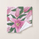 This illustration features a soft pink color palette and big lush blooming lily with delicate buds.