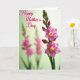 This greeting card features a close-up floral photo with a tall stem of blossoms along the right side, where two open flowers show soft pink petals that deepen to fuchsia near the center, surrounding bright yellow-green stamens like little sparks of affection ❤️. Above them, several curled buds line the stem, suggesting more blooms to come and adding a gentle, caring rhythm to the scene. The background fades into a softly blurred wash of pink and green, like a quiet garden moment shared between close friends. Light falls in a diffused way, bringing out the petal texture and giving the colors a calm, tender glow. In the upper left, the message “Happy Mother’s Day” sits as a flowing line of text in rich magenta, standing out against the muted green behind it. The lettering stays clear without competing with the flowers, leaving the blossoms to carry the warm, affectionate mood 🌼. The right-side flowers remain the sharpest detail, with the rest of the garden melting into a smooth pink-and-green haze behind them.
