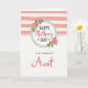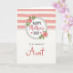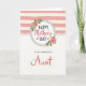This greeting card opens with soft pink-and-cream stripes across the top, then transitions to a white lower section through a tiny dotted border that feels like lace. Near the upper middle, a light gray circular frame with a dotted inner ring holds the words “Happy Mother’s Day,” with “Mother’s Day” in coral-pink lettering and a couple of small hearts ❤️. On either side of the circle, gentle botanical sprigs show rounded pink blossoms tucked among green leaves, like they’re leaning in toward the message in a caring way. In the white space below, “TO MY WONDERFUL” sits centered in neat, dark lettering, spaced to feel calm and steady. Under that, the word “Aunt” appears larger in coral-pink, with a flowing, decorative look that adds a warm, affectionate emphasis. The overall palette stays muted and soothing, with soft textures and tiny details that suggest a close, friendly bond 🌼. Small heart icons sit near the coral-pink wording inside the circular frame.