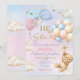 Pink & Blue Balloon He Or She Bear Gender Reveal Invitation