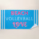 Fun summertime beach volleyball love typography in pink and white. Geometric white stripes against azure sky blue background. Original Design by TamiraZDesigns.