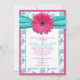 Pink Blue Daisy Damask First Communion Invitation