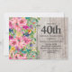 Pink Blue Floral Rustic Wood 40th Birthday Party Invitation