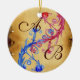 PINK BLUE FLORAL SWIRL WEDDING SOUVENIR MONOGRAM CERAMIC ORNAMENT