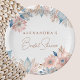 Celebrate your special day with this Personalized Boho Floral Bridal Shower paper plate, perfect for an excited bride-to-be. This beautifully designed plate features a captivating arrangement of dusty pink, beige, and blue flowers and leaves set against a crisp white background. The feminine and elegant design exudes rustic charm and bohemian grace, making it an ideal choice for a Boho Chic Bridal Shower party, lunch or picnic.