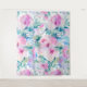 Modern pastel pink and blue watercolors flowers collage pattern.