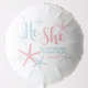 Welcome friends and family to a summer or beach themed gender reveal party to find out if the couple is having a boy or girl! A cute and trendy watercolor starfish beach pattern, boasting a blend of captivating pink and blue or teal shades reminiscent of a beach house paradise. Embrace the essence of summer with this coastal-inspired design, adorned with whimsical sea stars that exude a nautical charm. Cute Pink And Blue He Or She What Will Baby Be Beach Starfish Summer Gender Reveal Party Balloon