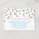 Cute baby shower book request insert cards in light pink, light blue and gold confetti glitter pattern. Perfect for a gender reveal party.