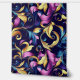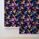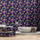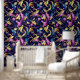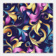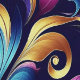 Transform your walls with this exquisite wallpaper featuring a vibrant leaf swirl pattern. This wallpaper design boasts a captivating mix of gold, blue, and pink leaves on a rich, dark background. Perfect for adding a touch of elegance and sophistication to any room, this bold and colorful wallpaper will infuse your space with energy and charm. generativecontent