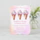 Pink Blue Ice Cream Three Scoops Birthday Party Invitation