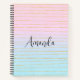 Spiral notebook with a cool abstract pattern. Pastel gradient in pink and blue colors with thin gold stripes. The gold stripes/lines are faux gold glitter.