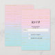 RSVP card with a cool abstract pattern. Pastel gradient in pink and blue colors with thin gold stripes.