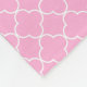 Custom monogram blanket in baby pink, dark navy blue and white Moroccan quatrefoil lattice pattern.