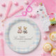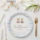 Classic paper plates with a soft pink and blue teddy bear design. Ideal for dessert or main courses at a gender reveal baby shower. Printed and shipped by Zazzle for easy hosting.