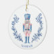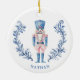 Pink & Blue Toile Crest Nutcracker Ceramic Ornament