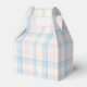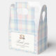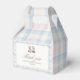 Perfect for holding party treats, these favor bags feature a timeless teddy bear design with pink and blue plaid accents.