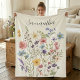 Pink Blue Wildflower Watercolor Name Fleece Blanket