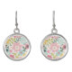 Pink, blue, yellow flowers, modern floral design on silver dangle earrings