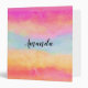 A binder with an image of a painted abstract design. Yellow blue and pink stripes. Bold and vibrant background pattern.