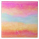 Ceramic tile with an image of a painted abstract design. Yellow blue and pink stripes. Bold and vibrant background pattern.