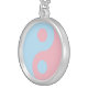 A pink and blue yin yang symbol for twins. We go together like yin and yang.
