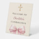 Pink blush bow ivory Confirmation welcome Pedestal Sign