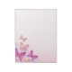 Custom notepad featuring pink butterflies flying from the corner and light pink blushes paper for your notes. Includes (40) tear away, medium-ruled, high-quality pages with cardboard backing for sturdy writing. Measures 8.5" x 11" inches.