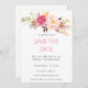 Save the date or Change the date. Two types of card designs in one. Send this pink blush blooming florals save the date or change the date card. The text can be changed to a change the date card & if needed, a new address and time of your wedding or event can be added. Decorated with a pink, white, or black background. See our pink blooming floral invitation suite for all background colors.
