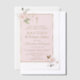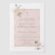 The invitation is printed on smooth, semi-translucent vellum paper, giving it an ethereal and refined look. The soft, milky texture of the paper creates a subtle sense of luxury, while allowing a faint hint of the underlying design to peek through. Modern and elegant card design featuring watercolour delicate pink blush flowers and green leaves, faux gold outlined flowers, faux gold cross, pink shape with faux gold frame. More ideas in my Religious Vellum Invitations Collection.