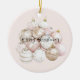 Lightweight, smooth, pure white ornament with nice sheen. Perfect size to be seen from across the room ... and to attract closer inspection! Price was great for ordering enough for the whole family! Clear, bold black design just as requested. Matches the order exactly. Just so nice!