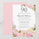Pink Blush Watercolor Floral 90th Birthday Invite