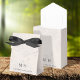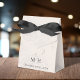 This design features a blush pink favor box with bride and grooms monogram template, an elegant monogram ampersand, with a simple floral greenery foliage, a stylish trendy calligraphy script, a wedding reception treat candy packaging, a monogrammed initials wedding date, an elegant wedding reception décor, a simple minimalist classic lettering, with the bride, and groom initials letters, a simple wedding day favor package, with babies breath flowers garden