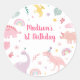 Pink Boho Dinosaur Birthday Classic Round Sticker