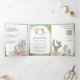 Pink Boho Floral Pampas Cactus QR Code Wedding Tri-Fold Invitation