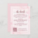 This beautiful wedding enclosure card is designed to give you extra space for whatever information your guests may need, including registry, reception, travel, accommodations, etc. as well as a customizable QR code directing your guests to your website for more information. The card features a pretty boho chic floral design with peony flowers and leaves in shades of cotton candy blush pink. The title is written in elegant script calligraphy and reads "the details."