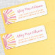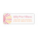 This bright and cheerful address label is the perfect finishing touch for mailing baby shower or "First Trip Around the Sun" birthday invitations. The design features a vibrant sun with a soft pink center on the left side, with colorful rays in a playful mix of yellow, orange, pink, and red for a joyful, sunny vibe.