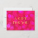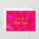 Gift Certificate card featuring the words "A Gift For You" in faux gold foil against a pink bokeh lights pattern background on the front.