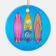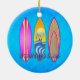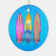 Pink Retro Born To Surf. 3 vintage style surfboards with the message Born To Surf. Ocean blue background.